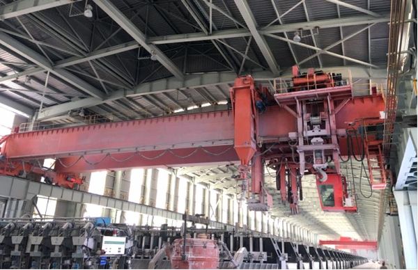 電解鋁多功能起重機(jī)是大型預(yù)焙陽極電解鋁生產(chǎn)的關(guān)鍵工藝設(shè)備,能適應(yīng)高溫、大電流、強磁場、多粉塵及HF煙氣的特殊環(huán)境,它能完成預(yù)焙陽級電解槽的下列工藝操作: